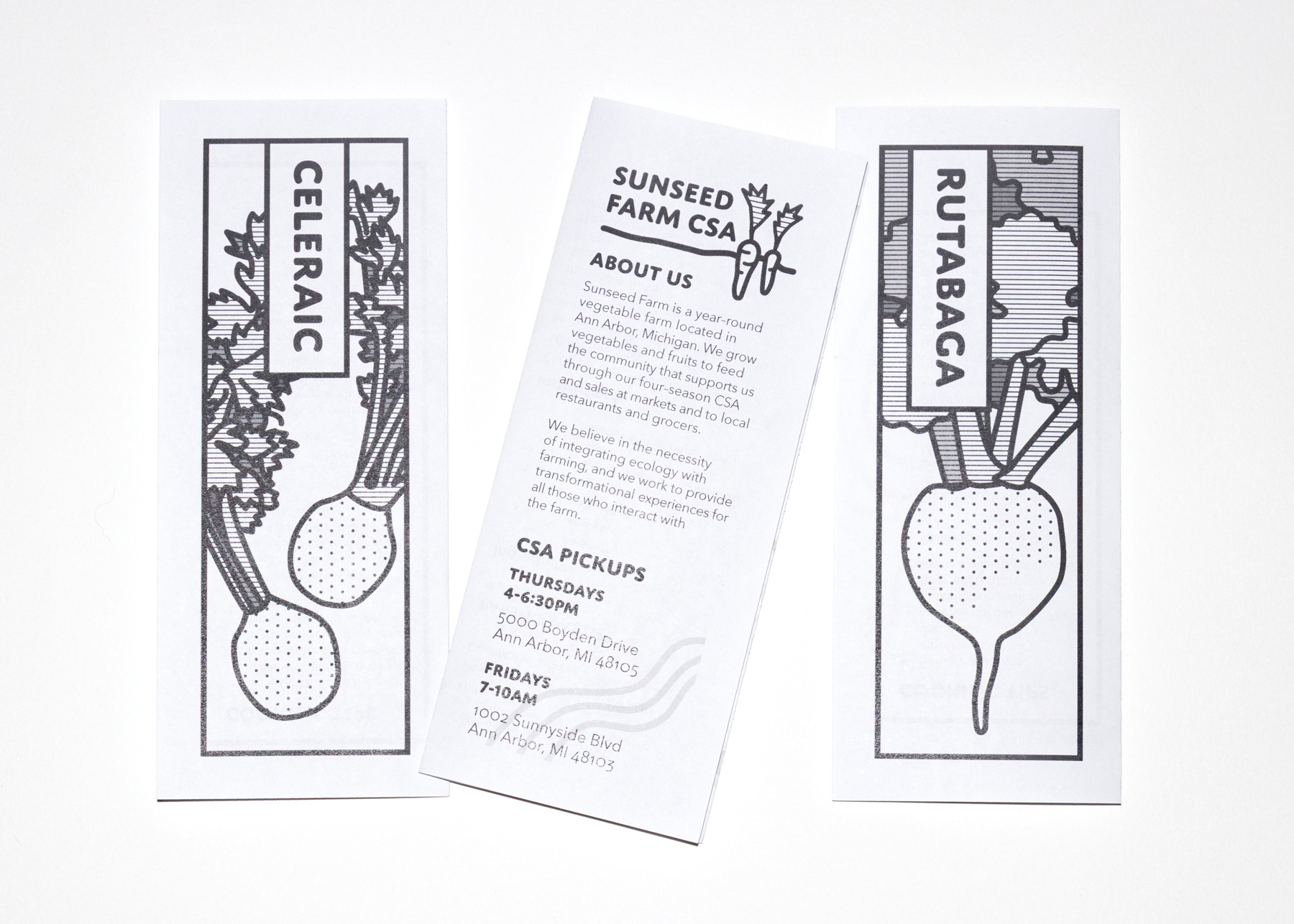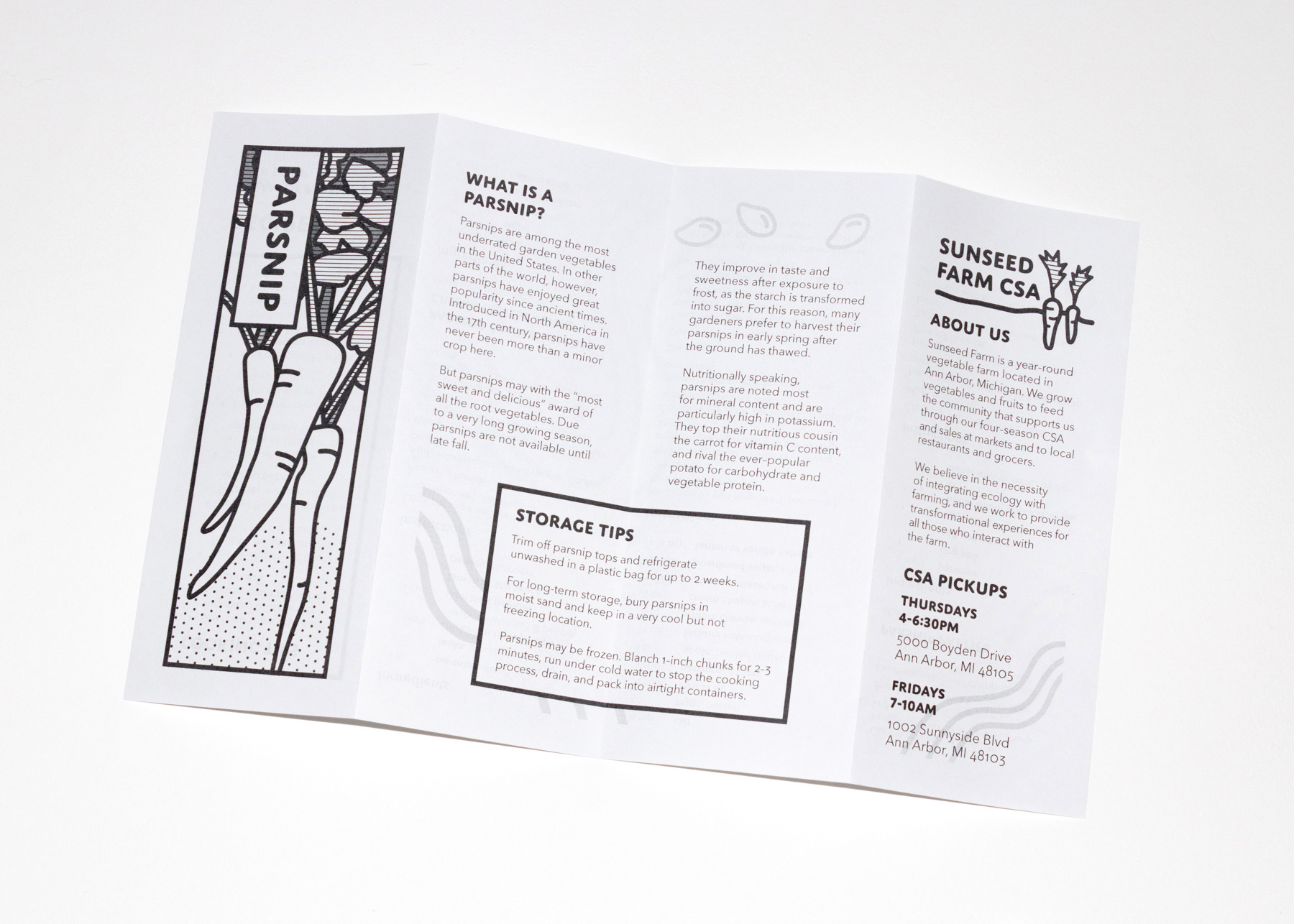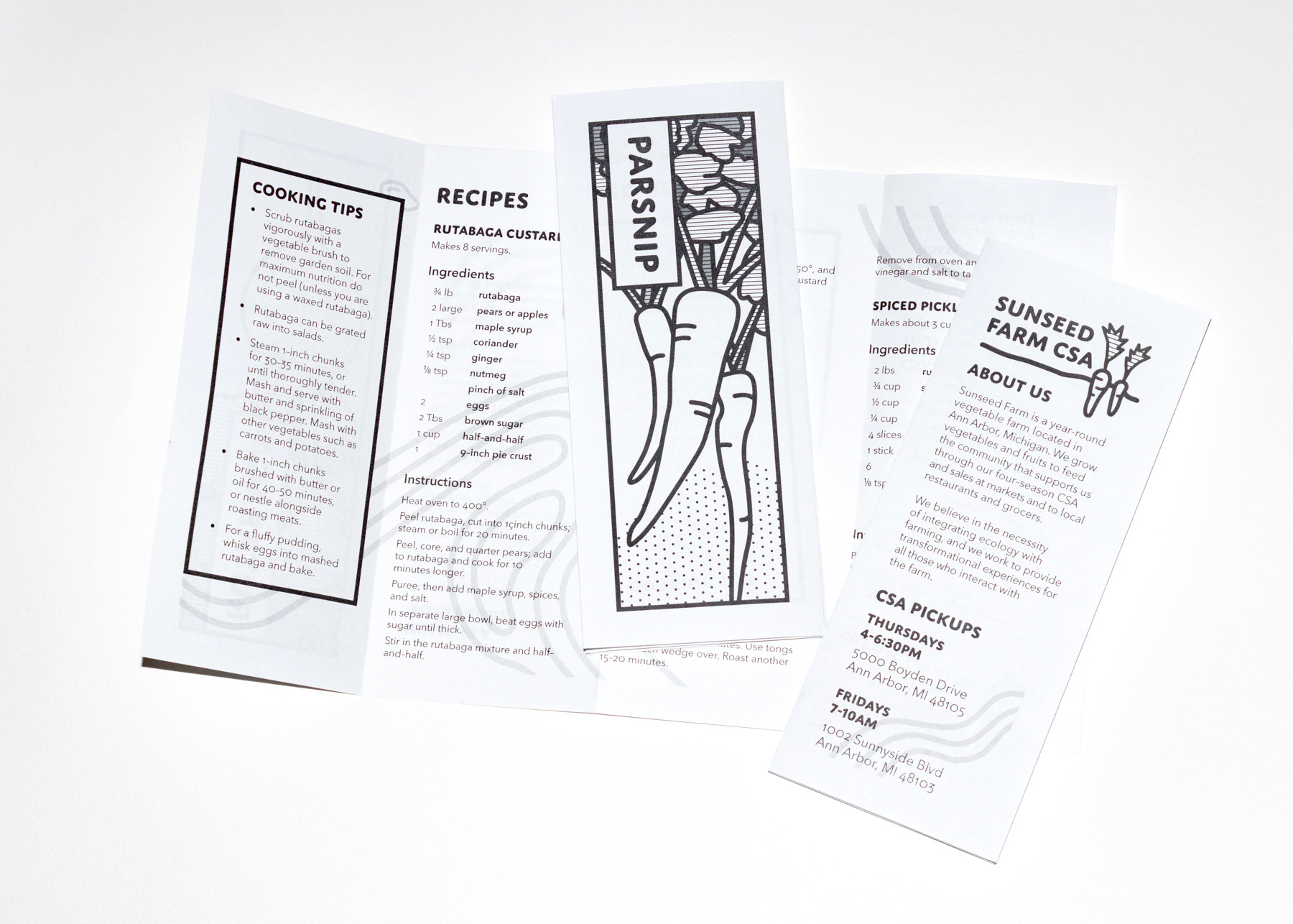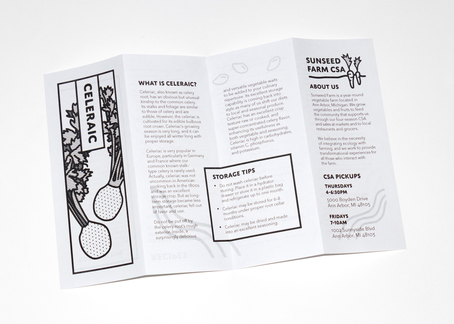 For this project I designed brochures for a local farm who wanted a fun way to share information about some uncommon vegetables they offer in their CSA boxes. I created the illustrations in Adobe Illustrator and compiled the brochures in Adobe InDesign.