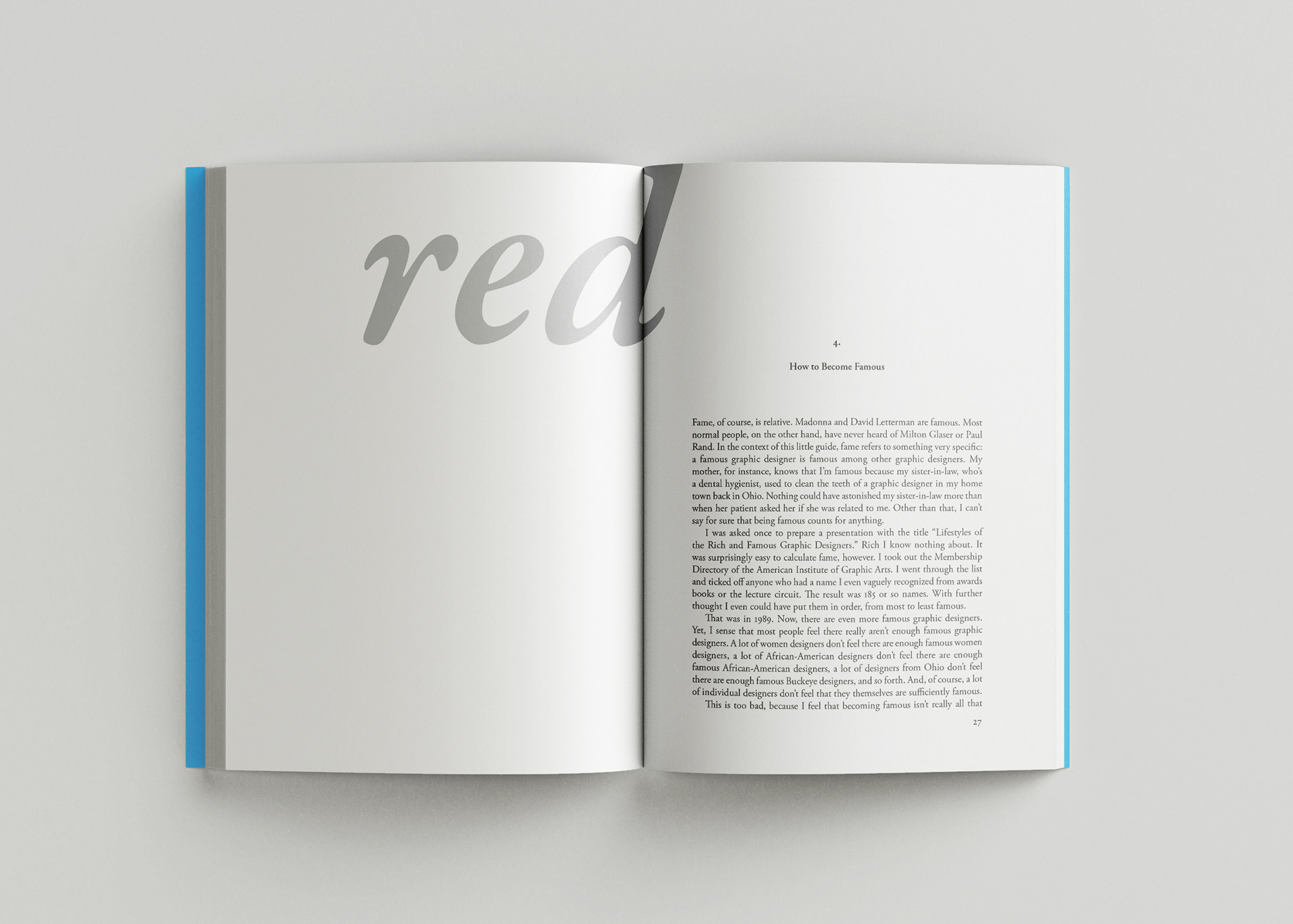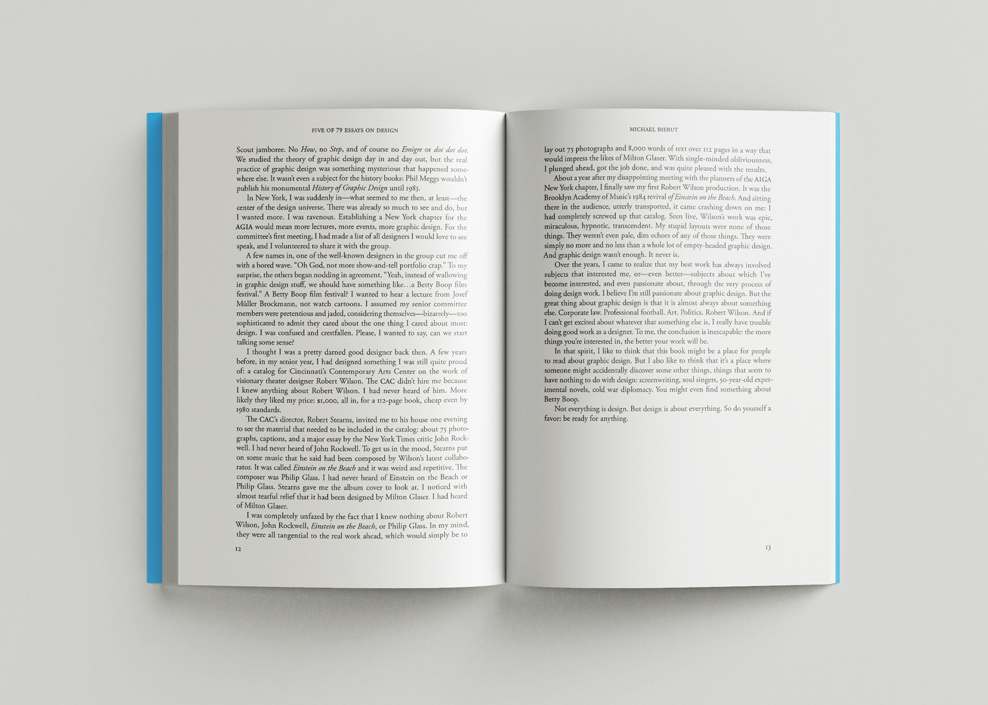 For this project I arranged a selection of essays from Michael Bierut's book 79 Essays on Design using Adobe InDesign. I also designed the cover, front matter, and table of contents.